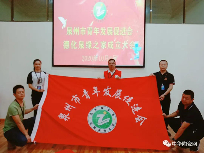 泉州市青年發(fā)展促進(jìn)會(huì)常務(wù)會(huì)長(zhǎng)洪朋友為德化泉緣之家授旗