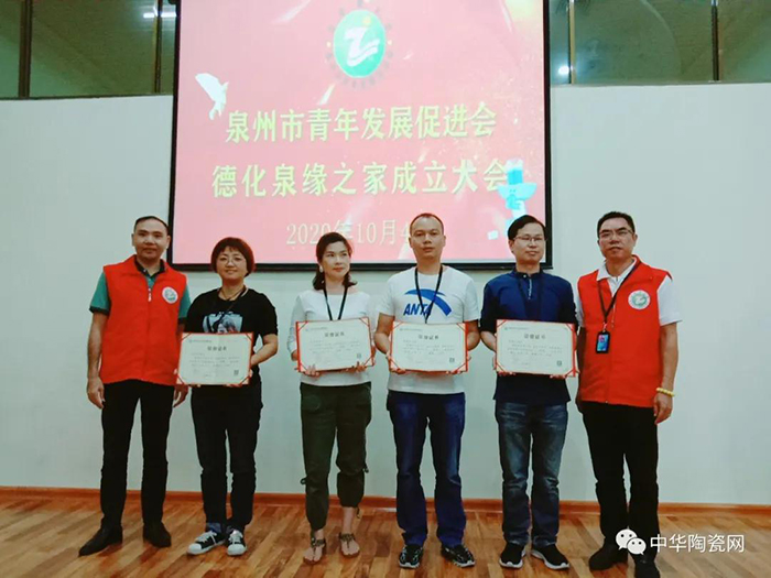 會(huì)上泉州市青年發(fā)展促進(jìn)會(huì)領(lǐng)導(dǎo)為德化理事單位頒發(fā)證書(shū)