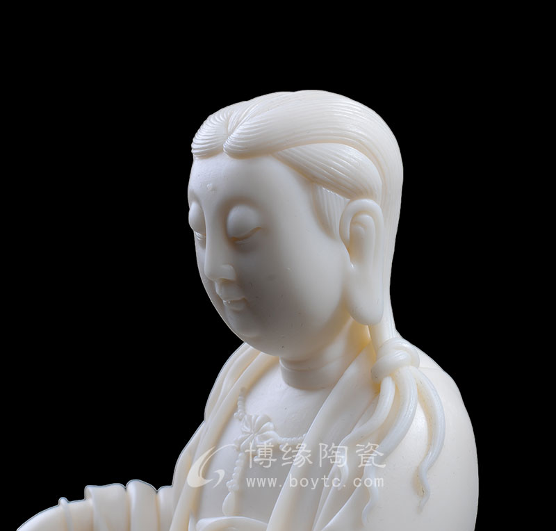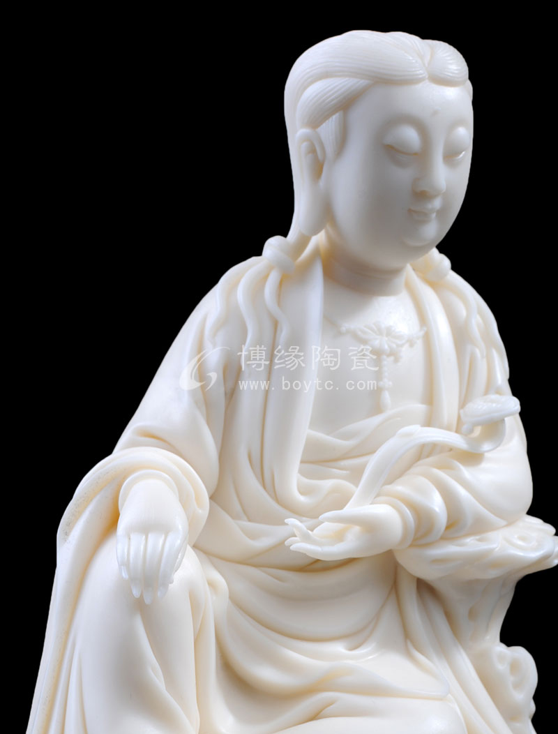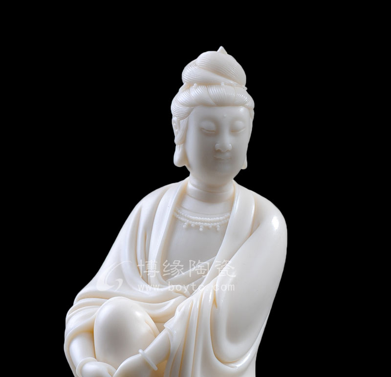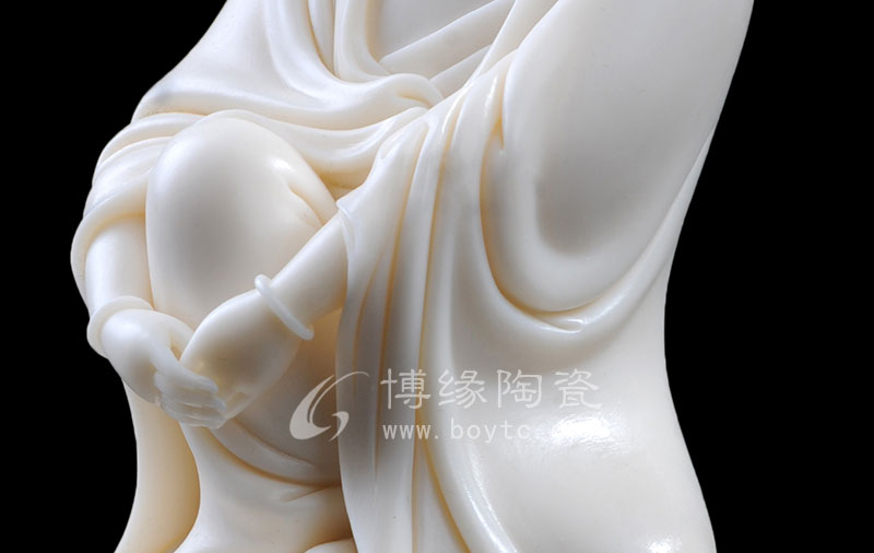 德化瓷器,以白瓷為最;白瓷之中,又以佛像為最。德化白瓷所塑佛像有性格鮮明、造型優(yōu)美、神態(tài)逼真、風格洗練的特點。有一種單純的雕塑美和原材料的質地美,最能體現佛教樸素、平和的思想。