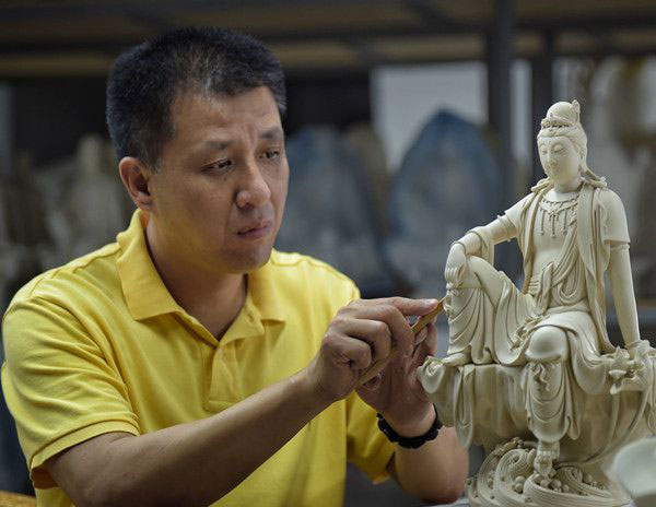 自幼隨父親許興泰(中國工藝美術大師、中國陶瓷藝術大師)學藝,在繼承德化歷代瓷塑技藝尤其是家族傳統(tǒng)技藝的基礎上,致力于藝術創(chuàng)新與手法創(chuàng)新,在“瓷圣”何朝宗的寫意概括與“山湖祖”精雕細琢的許氏家傳技法之間找到了平衡點,創(chuàng)造出獨樹一幟的“許氏瓷塑”藝術風格。