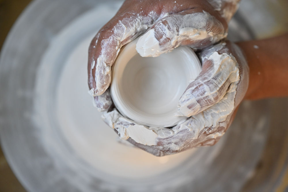 10月20日,徐金寶在拉坯制作白瓷茶具。