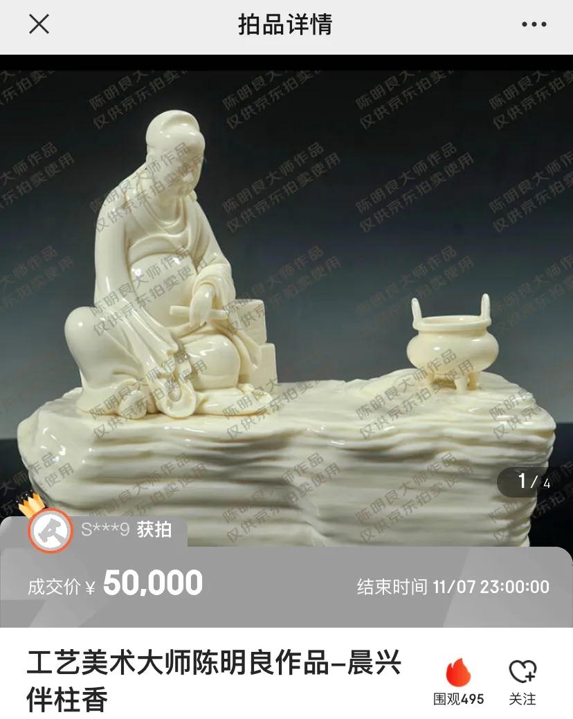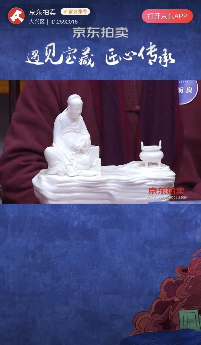 中國工藝美術(shù)大師陳明良作為國家非物質(zhì)文化遺產(chǎn)“德化瓷燒制技藝”代表性傳承人,此次帶來一款獨具德化窯特色風格的瓷雕作品《晨興半柱香》亮相京東拍賣,通過在線展示德化白瓷材質(zhì),講解德化瓷雕技藝和燒制工藝,增長線上網(wǎng)友對德化瓷雕作品的見解,促進德化藝術(shù)瓷的進一步傳播和推廣。