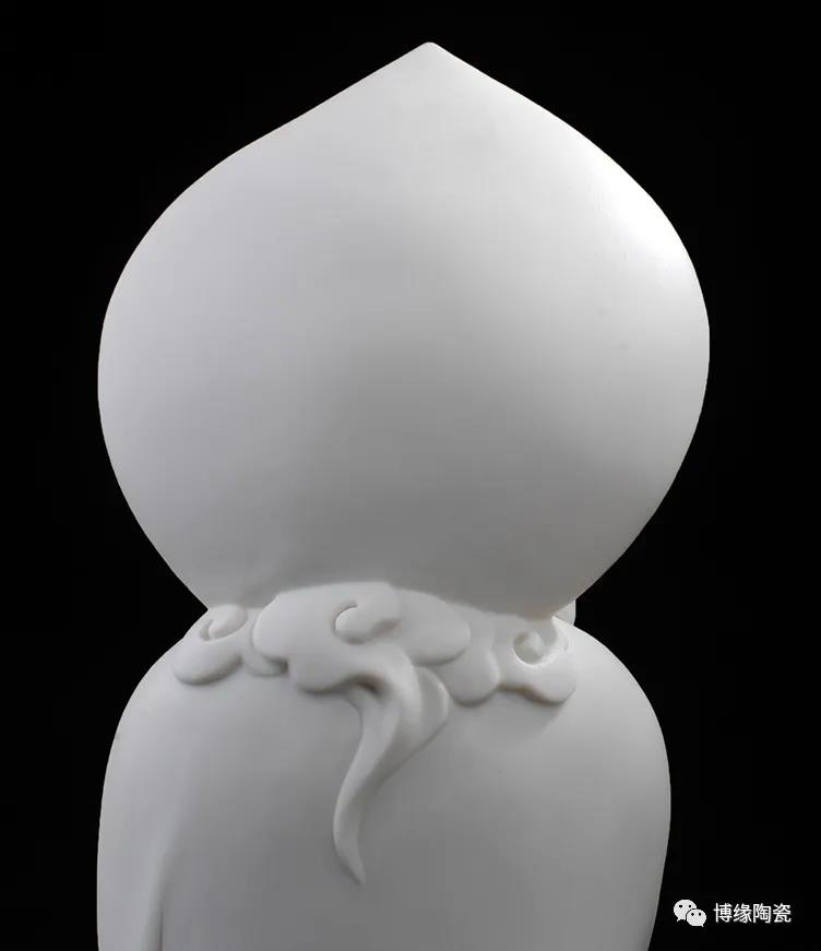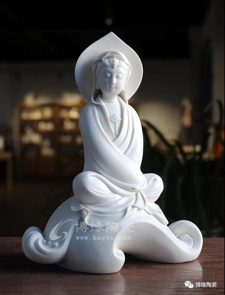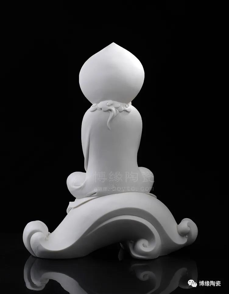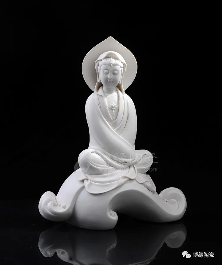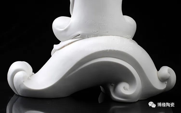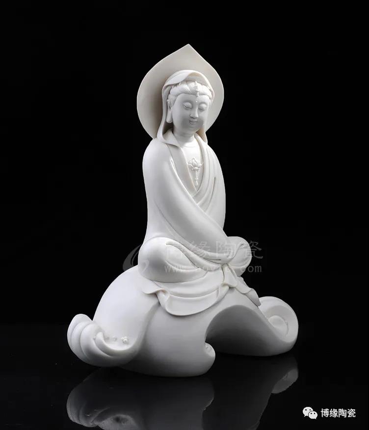 早在明代德化白瓷佛像就名聲在外,一代“瓷圣”何朝宗佛像名作流傳后世,成為世界各大博物館收藏的珍品,更對(duì)佛像雕塑史上產(chǎn)生深遠(yuǎn)的影響,形成“何派”雕塑,其開創(chuàng)的捏、塑、雕、刻、刮、削、接、貼八字技法延用至今。何派觀音雕塑注重于細(xì)節(jié)之美,精益求精,故而十分著意衣紋的刻畫,使線條流暢,翻轉(zhuǎn)自然。觀其佛像,仿佛有春風(fēng)拂面,衣袂飄揚(yáng)的出塵之感。