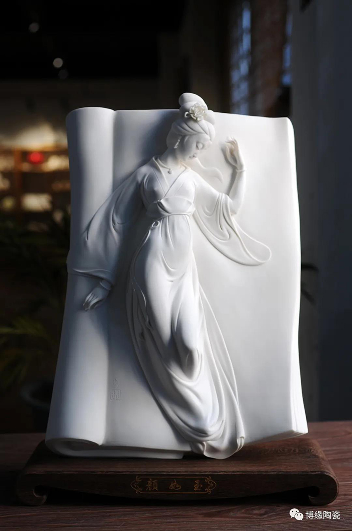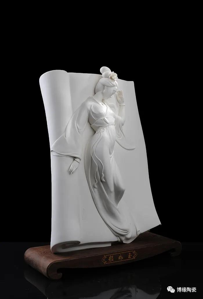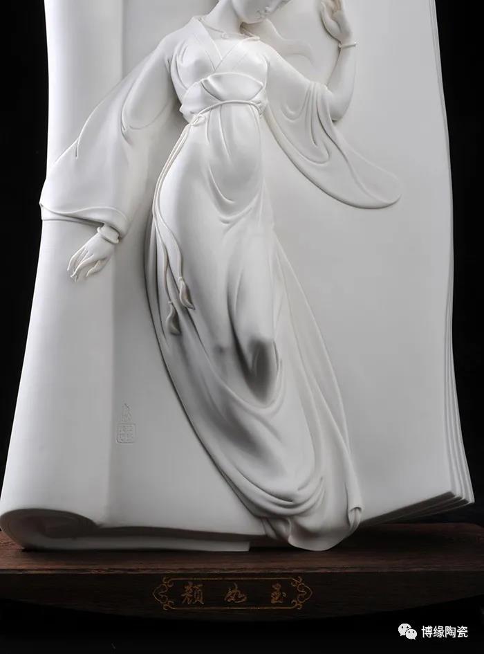 《顏如玉》是全國技術(shù)能手李錦峰的代表作品,其根據(jù)李清照的《醉花陰》一詞獲取靈感,以“書中自有顏如玉"為引子,用當(dāng)代的雕塑手法塑造出婉約、小資的古代女子曼妙身姿形,大量留白的書卷給人無數(shù)的空間想像,女子從書卷呼之欲出,人物雕刻精細(xì),線條柔美,流暢自然。2013年11月《顏如玉》榮獲福建省第四屆陶瓷藝術(shù)創(chuàng)新大賽銀獎。