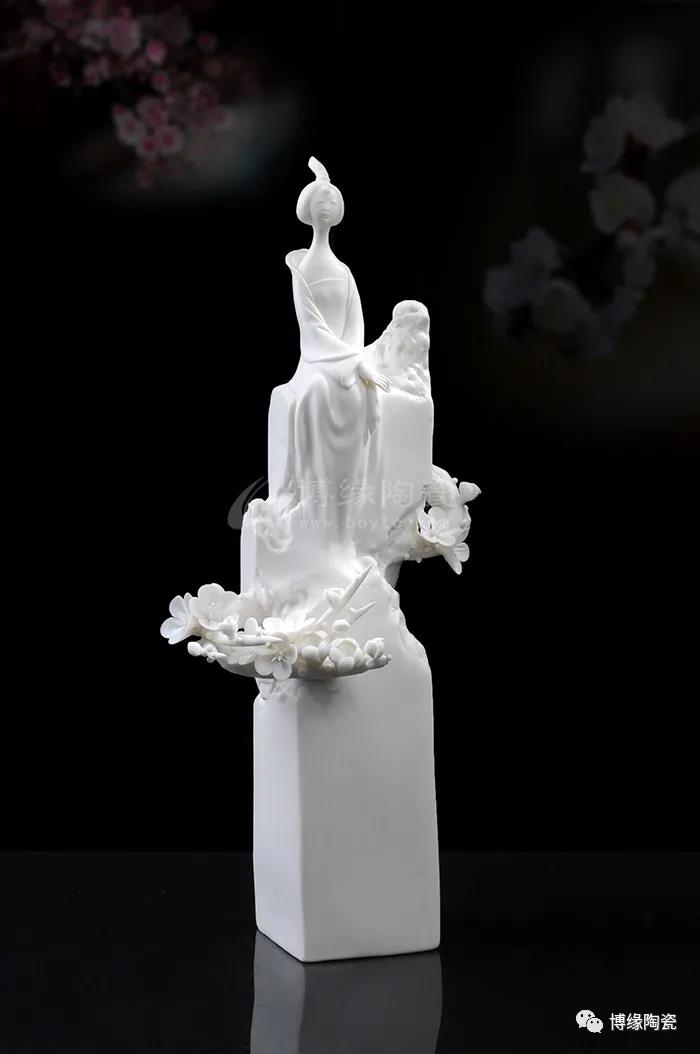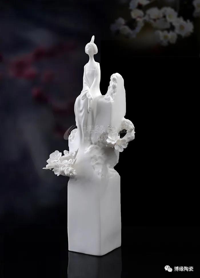 德化陶瓷作品創(chuàng)作題材豐富,其中仕女也是一大題材之一,自古以來(lái),以四大美女、唐清仕女等人物創(chuàng)作的作品比比皆是。因德化白瓷細(xì)膩,可塑性強(qiáng),適合仕女作品創(chuàng)作,所創(chuàng)作品人物傳神,雕刻精細(xì)!