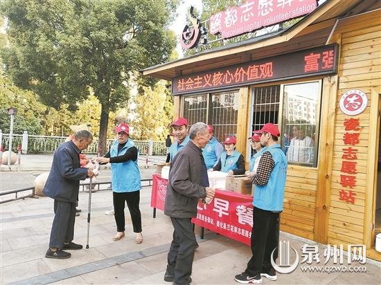 蘭花草志愿服務(wù)隊在瓷都廣場發(fā)放愛心早餐(蘭花草志愿服務(wù)隊 供圖)
