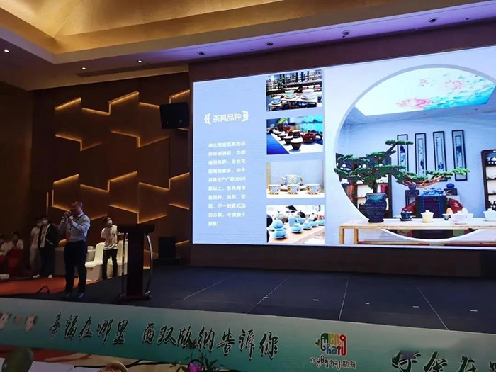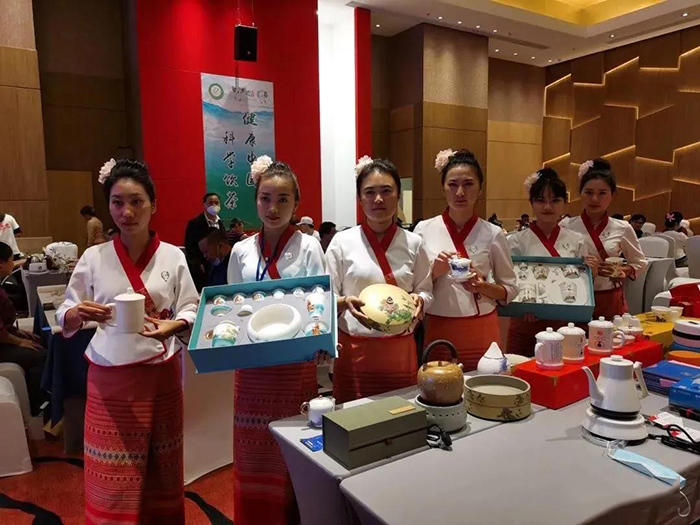 中國(guó)茶具城企劃部負(fù)責(zé)人顏寶敬在會(huì)上做“好茶配好器”主題演講,向與會(huì)嘉賓隆重介紹德化縣的茶具產(chǎn)業(yè)現(xiàn)狀、規(guī)模、亮點(diǎn)、特色等,大力推介德化陶瓷茶具與茶葉的相互配合,相得益彰,重點(diǎn)推介德化高檔茶具的“三度標(biāo)準(zhǔn)”和作為送禮的“三品價(jià)值”,在演講的同時(shí),6位年輕漂亮的傣族禮儀小姐手捧德化白瓷茶具、羊脂玉個(gè)人杯、茶葉罐、燒水壺、煮茶壺,向與會(huì)嘉賓進(jìn)行展示,讓在場(chǎng)的嘉賓認(rèn)識(shí)到德化陶瓷的精美,對(duì)德化瓷稱贊不已!