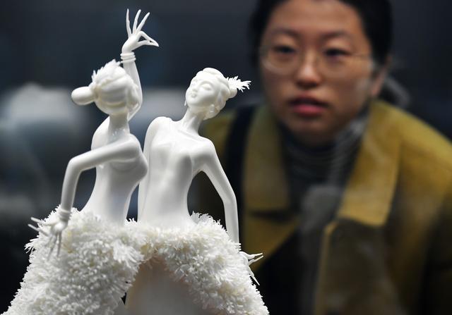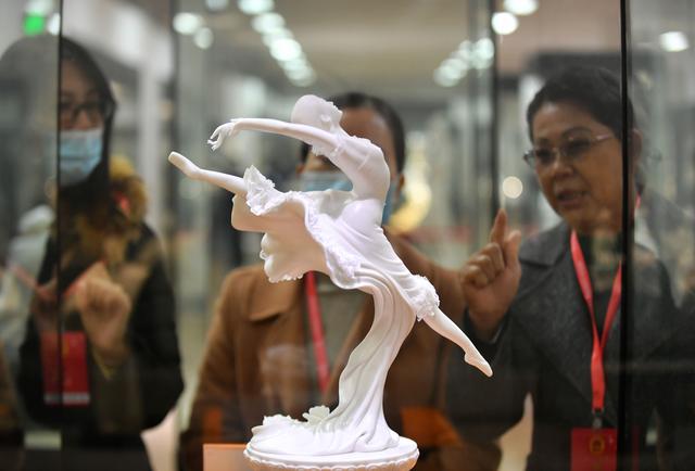 ↑12月16日,觀眾在欣賞傳統(tǒng)陶瓷藝術(shù)作品《天鵝飛舞》。12月15日,首屆德化“中國白”中國傳統(tǒng)陶瓷藝術(shù)雙年展開幕式暨頒獎(jiǎng)典禮在福建泉州德化舉行。本屆雙年展以“弘揚(yáng)匠心致敬傳統(tǒng)”為主題,經(jīng)全國15位專業(yè)評委精心評選出的158件傳統(tǒng)陶瓷藝術(shù)精品進(jìn)行集中展出,展出時(shí)間至2021年3月15日。新華社記者魏培全攝