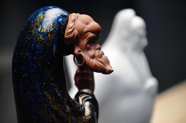 ↑這是12月16日拍攝的中國傳統(tǒng)陶瓷藝術(shù)精品《達(dá)摩渡江》局部。