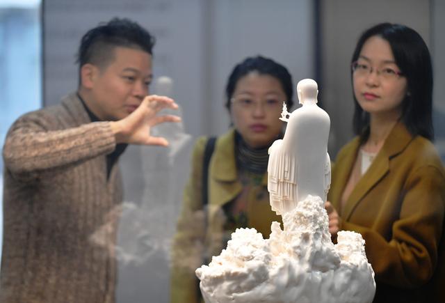 ↑這是12月16日拍攝的首屆德化“中國白”中國傳統(tǒng)陶瓷藝術(shù)雙年展入選作品展示現(xiàn)場。