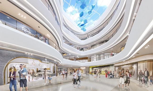 德化國(guó)際陶瓷藝術(shù)城位于德化城區(qū),總建筑面積約6.4萬(wàn)平方米,囊括4.8萬(wàn)平方米陶瓷商場(chǎng),1.6萬(wàn)平方米陶瓷商業(yè)街。在整體規(guī)劃設(shè)計(jì)上,德化國(guó)際陶瓷藝術(shù)城借鑒德化城雕“渡海觀音”衣紋流動(dòng)、層層分明的設(shè)計(jì)元素,采用橫向線條層層相疊的設(shè)計(jì)手法來(lái)創(chuàng)造層巒疊嶂的地質(zhì)面貌,與周邊的山體環(huán)境交相呼應(yīng)。