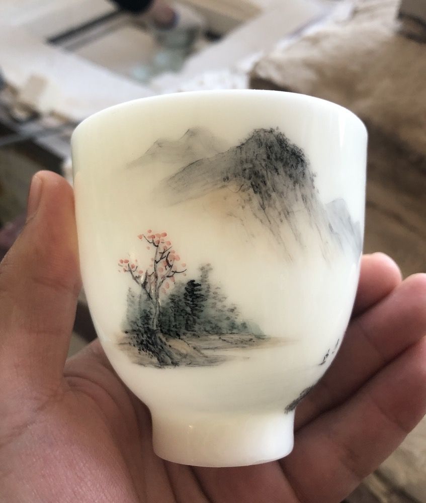老總的祝福下,送了一個喝水杯子,那就來說說感受吧:山水畫是工匠大師老羅的精湛手法,通過色彩調(diào)配,以及顏色還原真實(shí)的比例手繪上去的,這一個杯子前后手繪的周期要花3天時間,為了多方面的細(xì)節(jié),要不斷的深入化修正和改進(jìn);在陽光照射下晶瑩易透,娓娓動人,似乎山水畫的花草樹木就盤活在眼前,為人之震驚,對于小編來說真是愛不釋手。