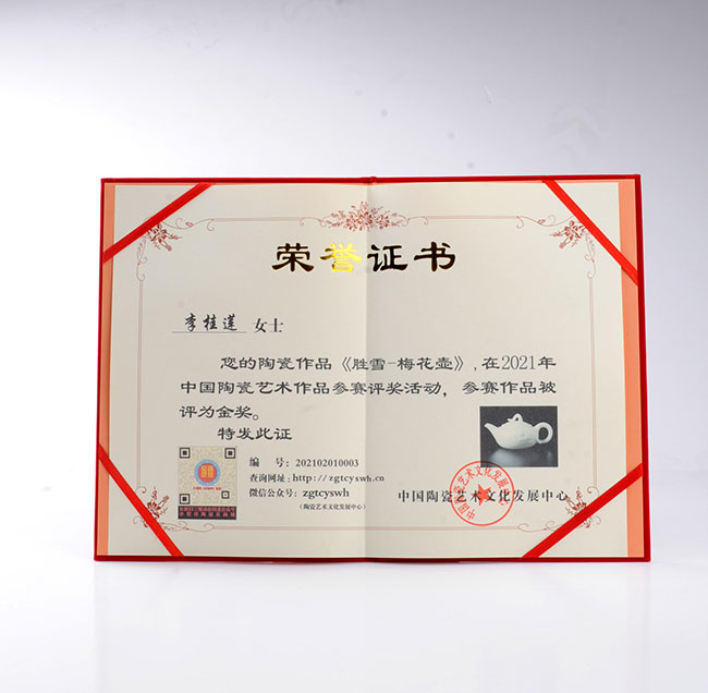 經(jīng)過20多年的實(shí)踐及其家族藝術(shù)領(lǐng)域浸染,李桂蓮在陶瓷瓷釉研究、堆雕絕技,藝術(shù)繪畫等領(lǐng)域有較深造旨,其設(shè)計(jì)創(chuàng)作作品多次榮獲金獎(jiǎng),深受好評(píng)。