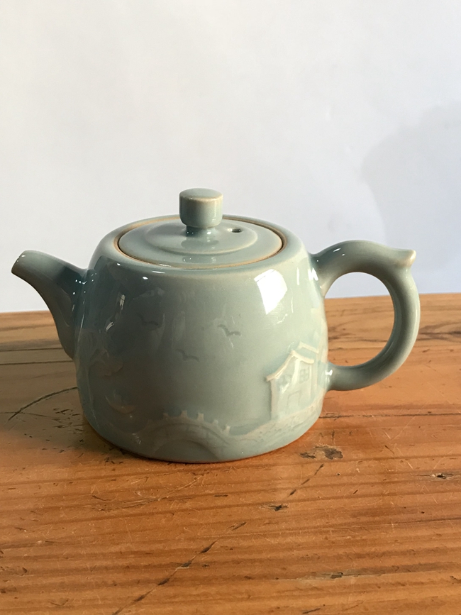 朦朧的遠(yuǎn)山,籠罩著一層輕紗,影影綽綽,猶如幾筆淡墨浮現(xiàn)在天邊。燕群在空中飛過,寧靜的村莊升起了縷縷炊煙,隱隱聽見近處小屋里傳來陣陣笑聲、討論聲,伴隨著橋下汩汩的流水聲、風(fēng)拂過樹梢發(fā)出的沙沙作響聲,一幅“其樂融融”的莊園美好生活不僅浮現(xiàn)至茶具表面,更是生動(dòng)十足地展現(xiàn)在眼前。美景家園,是柴米油鹽的日常,也是人們對(duì)其樂融融的溫馨生活的一份期盼。