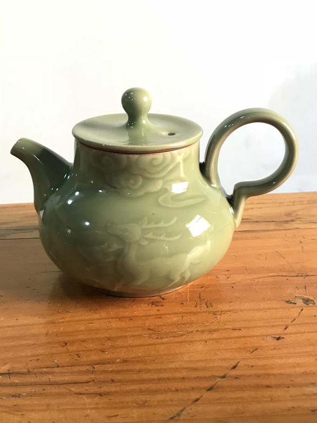 青龍昂首盤旋,身姿無不顯示出威風(fēng)凜凜之感。古有青龍騰云駕霧的說法,世人為其磅礴氣勢(shì)所敬佩。祥云浮動(dòng),給觀者留下了引人入勝的境界,無不為此情此景所感嘆。如意的搭配,更是錦上添花,三者巧妙融合,搭配帶有歷史感的色彩,造就了一個(gè)精美茶壺。光是見到此茶壺,便讓人禁不住感慨它透露出來的端莊大氣。