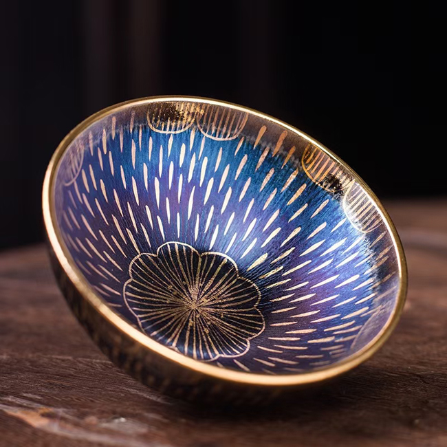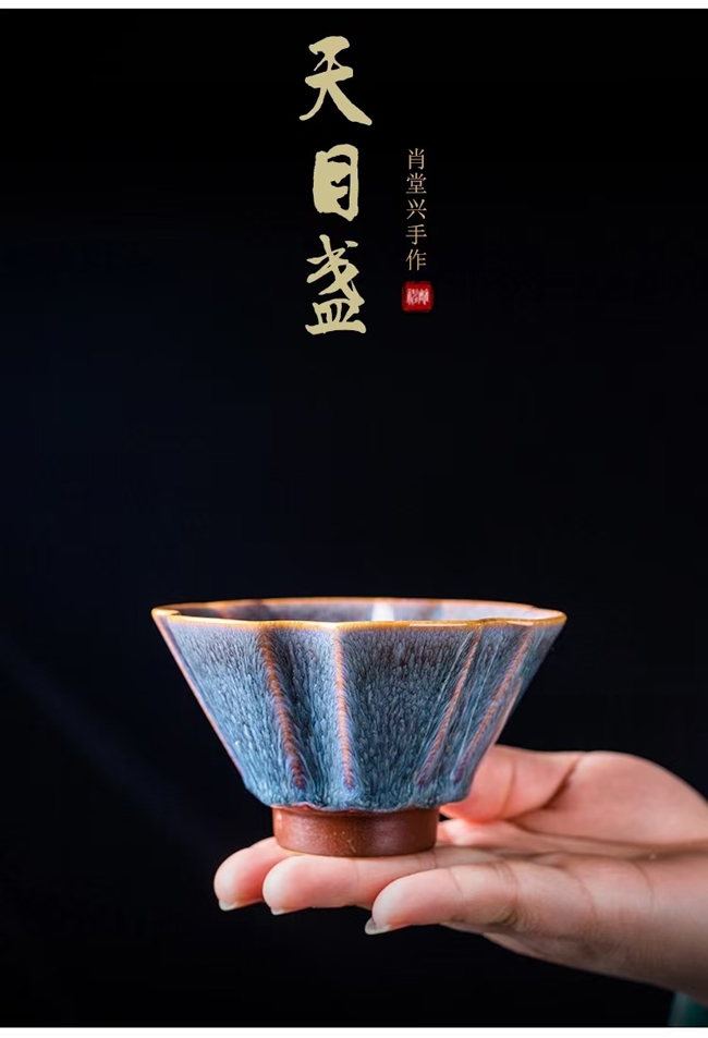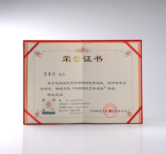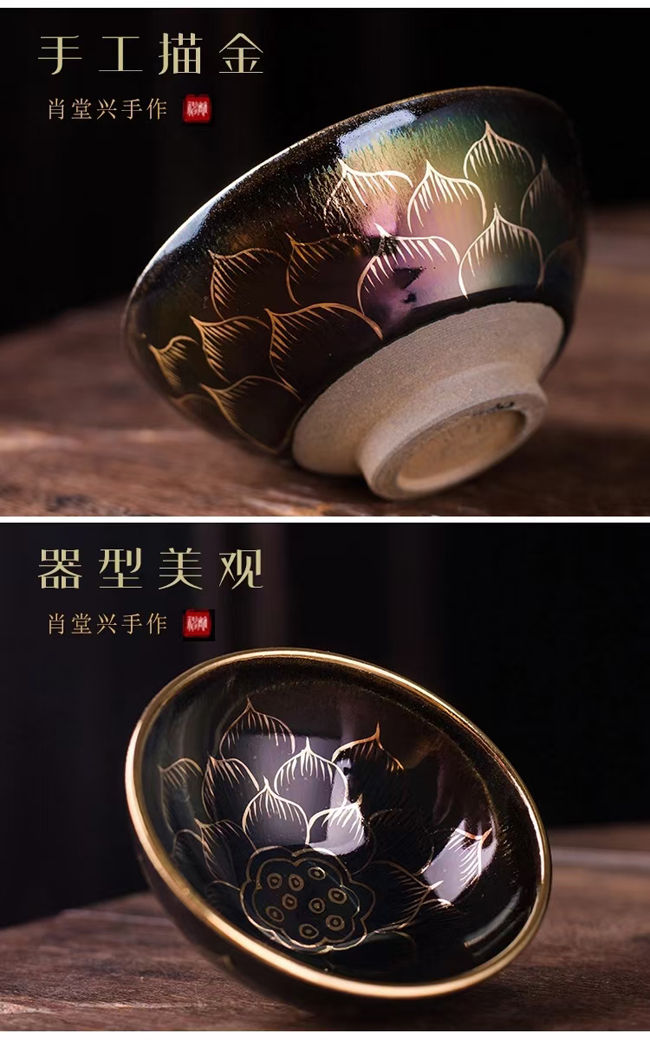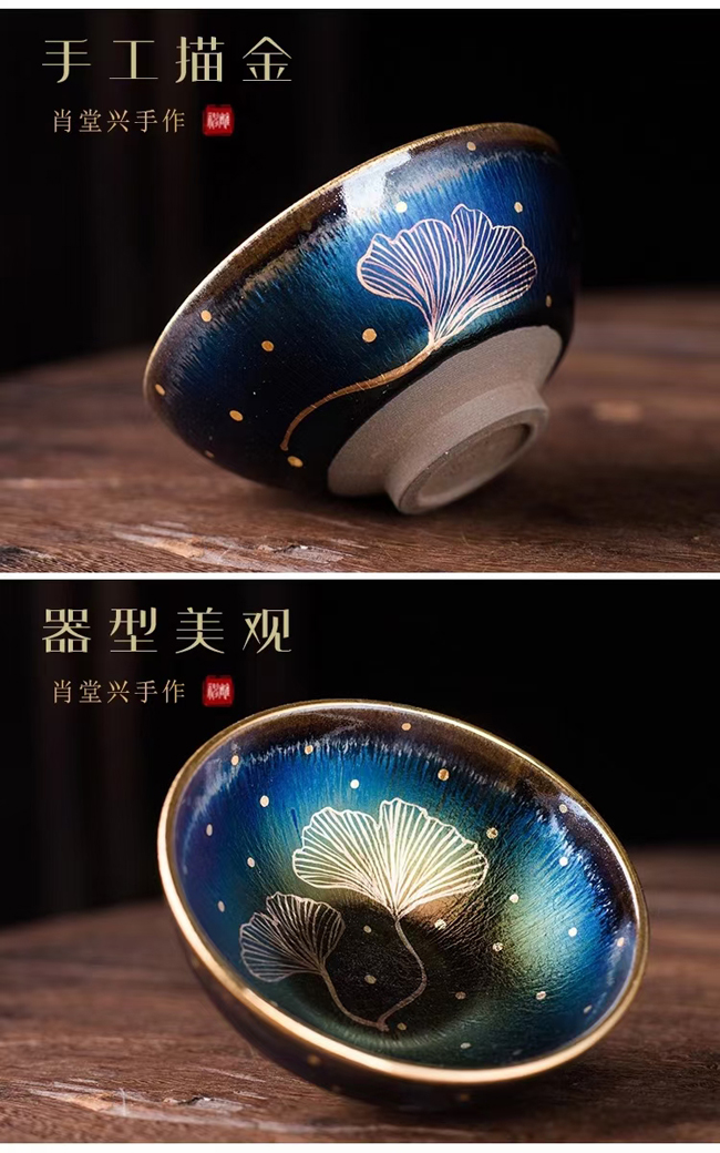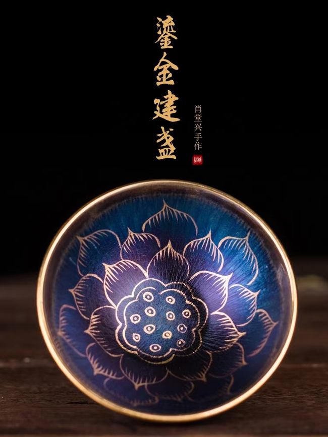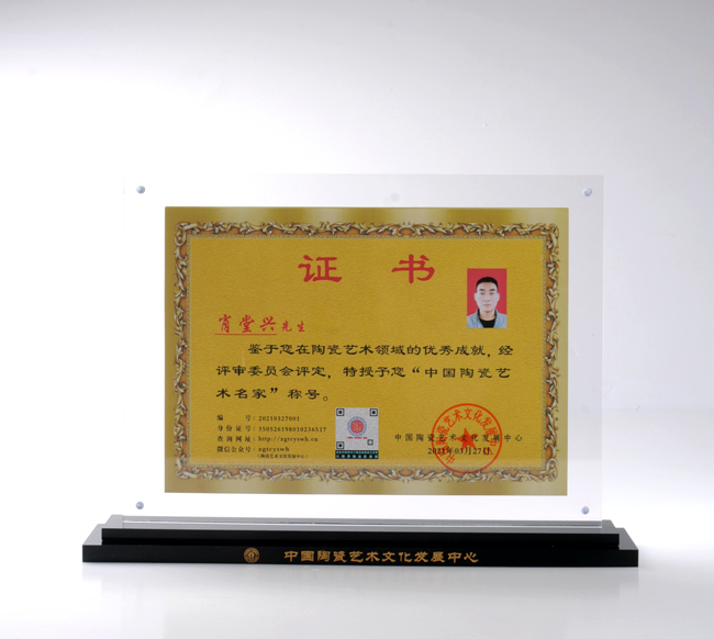 肖堂興從小深受瓷都陶瓷文化熏陶,耳濡目染,高中畢業(yè)后開(kāi)始從事瓷器創(chuàng)作銷售工作,經(jīng)過(guò)10多年的積累,其熟練掌握泥料材質(zhì)、器型設(shè)計(jì)、手拉坯、釉水配方、燒制技藝,近年來(lái)其積極創(chuàng)新瓷器與鎏金工藝的相結(jié)合,創(chuàng)作出各類瓷器與茶盞等系列作品。金與瓷器的碰撞將現(xiàn)代和傳統(tǒng)元素結(jié)合,呈現(xiàn)出唯美的視覺(jué)。窯變、器型與鎏金工藝相混搭,豐富和提高了茶盞的文化內(nèi)涵,實(shí)現(xiàn)了作品的更藝術(shù)效果及提高價(jià)值收藏價(jià)值。其創(chuàng)作作品多次榮獲金獎(jiǎng),作品《天目盞》榮獲2021年中國(guó)北京陶瓷藝術(shù)名家作品展金獎(jiǎng)。