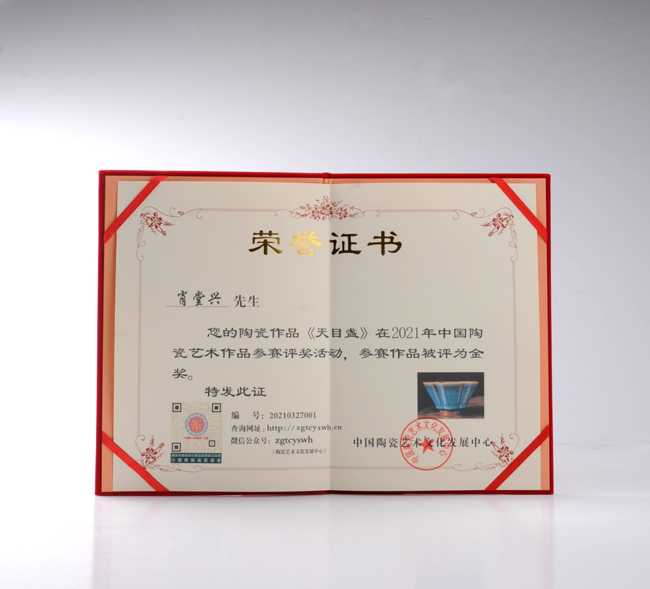 作品《天目盞》榮獲2021年中國(guó)北京陶瓷藝術(shù)名家作品展金獎(jiǎng)