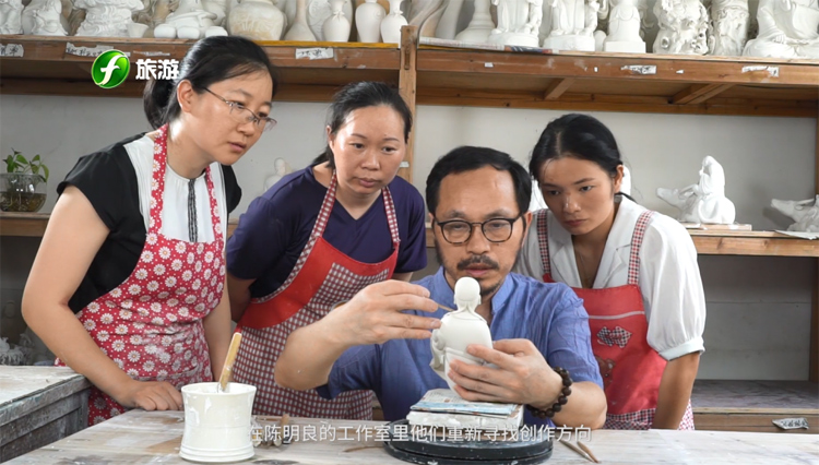 如今陳明良正式收的三十多個徒弟,大都從小就學習瓷塑,接受過專業(yè)的美術(shù)教育,在陳明良的工作室里他們重新尋找創(chuàng)作方向,并在師傅的指導下追求本心,提升技藝,如今已有九位是省級陶瓷藝術(shù)大師,成為德化陶瓷行業(yè)的新一代力量。