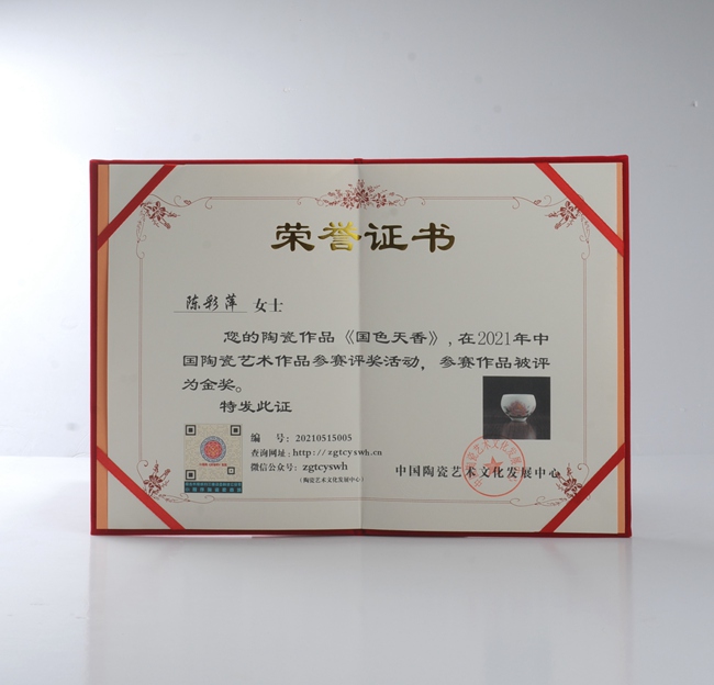《國色天香禪定杯》榮獲2021年中國國際北京陶瓷藝術(shù)名家作品展金獎(jiǎng)