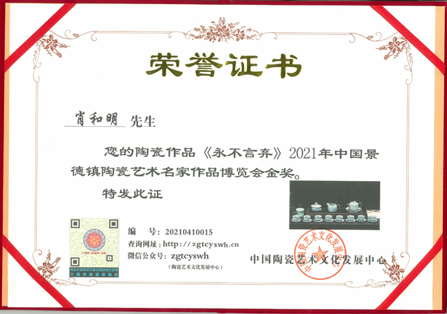 《永不言棄》榮獲2021年中國景德鎮(zhèn)陶瓷藝術(shù)名家作品博覽會金獎
