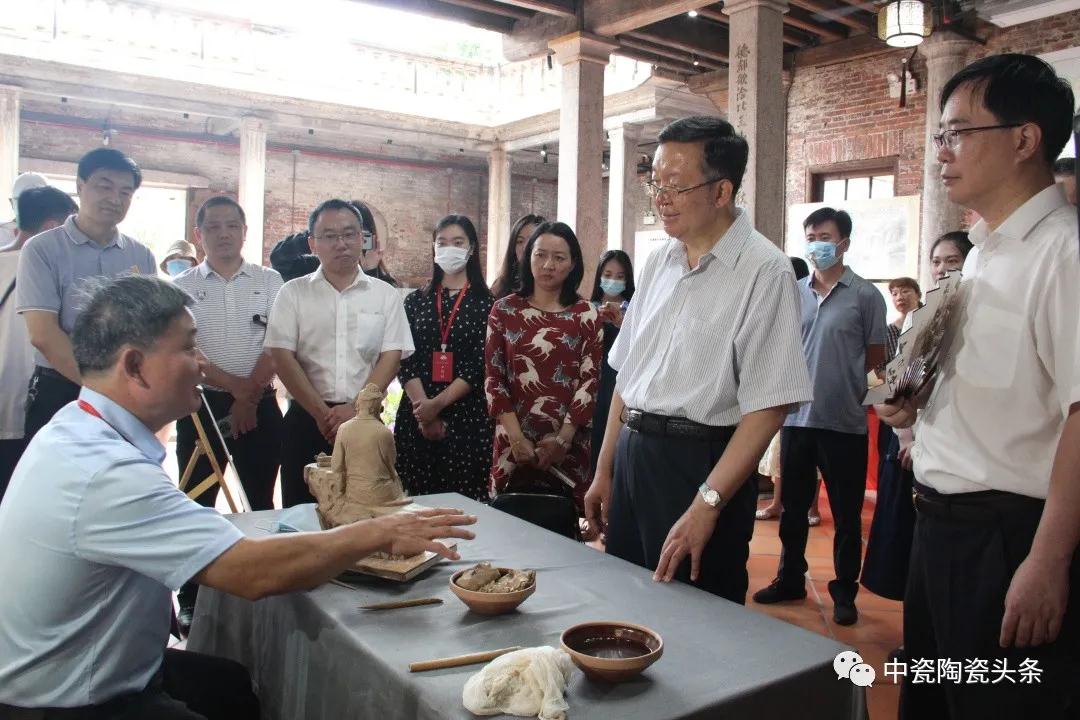 7月30日,新晉世遺德化瓷再次吸引關(guān)注。參加世遺大會(huì)的嘉賓及福州市領(lǐng)導(dǎo)一行走進(jìn)永德會(huì)館,參觀德化瓷燒制技藝現(xiàn)場(chǎng)展演,并與中國(guó)工藝美術(shù)大師賴禮同親切互動(dòng)。