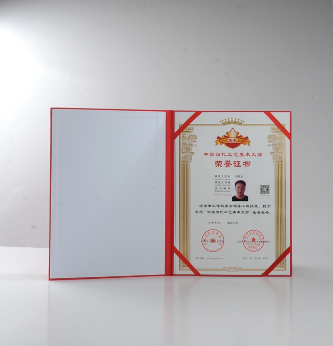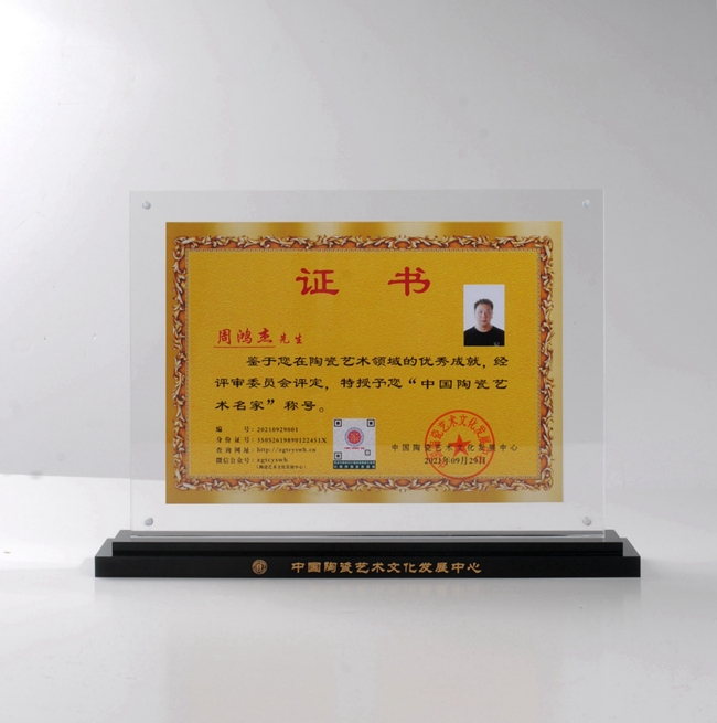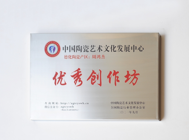 周鴻杰從小深受千年瓷都德化陶瓷文化熏陶,耳濡目染,便對(duì)德化陶瓷產(chǎn)生濃厚興趣,也喜歡上了陶瓷及其燒制技藝。畢業(yè)后便開(kāi)發(fā)始從事陶瓷創(chuàng)作,經(jīng)過(guò)10多年學(xué)習(xí)與工作積累,熟練掌握泥料選配、器型設(shè)計(jì)、手拉坯、釉水配方、燒制技藝。其積極探索與大膽創(chuàng)新,創(chuàng)作出瓷器與鎏金工藝相結(jié)合,鎏金與瓷器的結(jié)合也將現(xiàn)代申美與古典工藝元素相碰撞,產(chǎn)生不一樣的視覺(jué)效果。造型與鎏金工藝相混搭實(shí)現(xiàn)審美并重,豐富了文化內(nèi)涵。2014年周鴻杰創(chuàng)辦皇杰造物及品牌“皇·金盞”并任兼藝術(shù)總監(jiān),經(jīng)過(guò)多年創(chuàng)作,其創(chuàng)作出一系列茶盞鎏金作品,作品器形豐富,款式新穎,深受廣大客戶(hù)及收藏愛(ài)好者喜愛(ài),多件作品被評(píng)為金獎(jiǎng),2021年作品《大漆心經(jīng)金盞》、《龍鳳金盞》榮獲北京中國(guó)陶瓷藝術(shù)名家作品展金獎(jiǎng)等。
