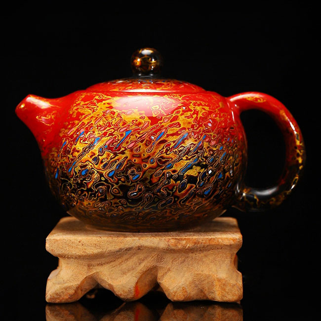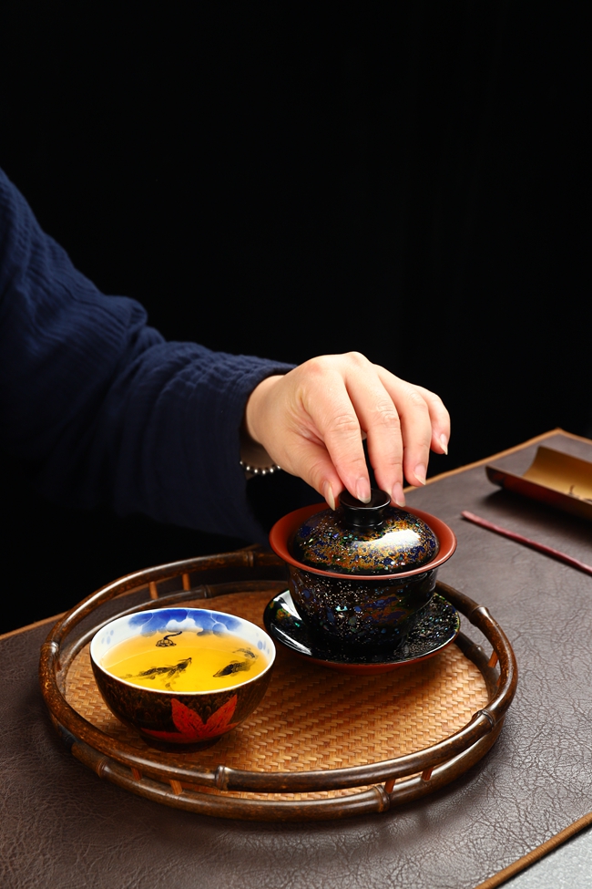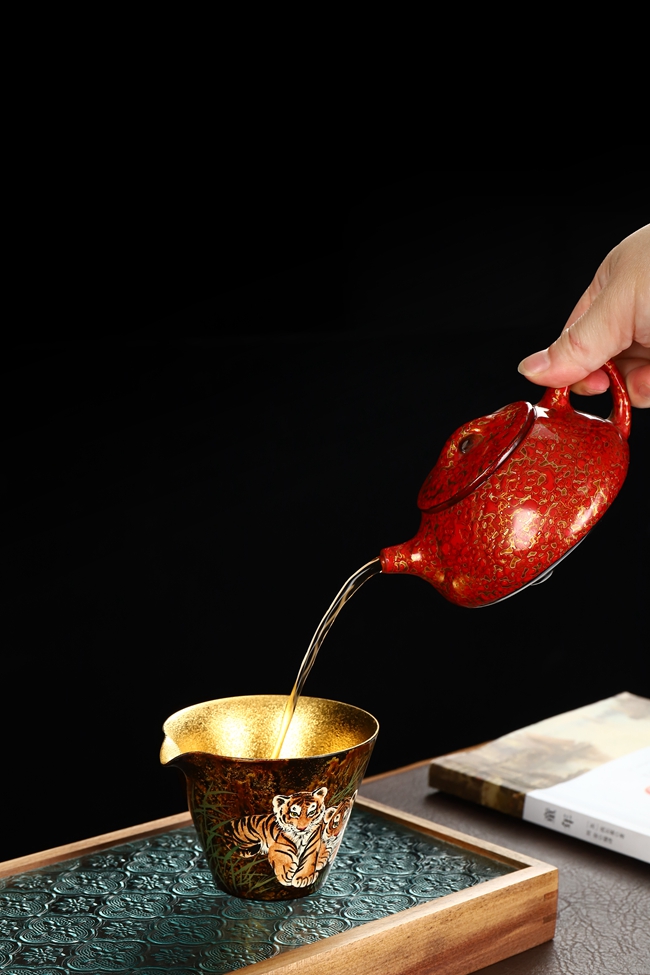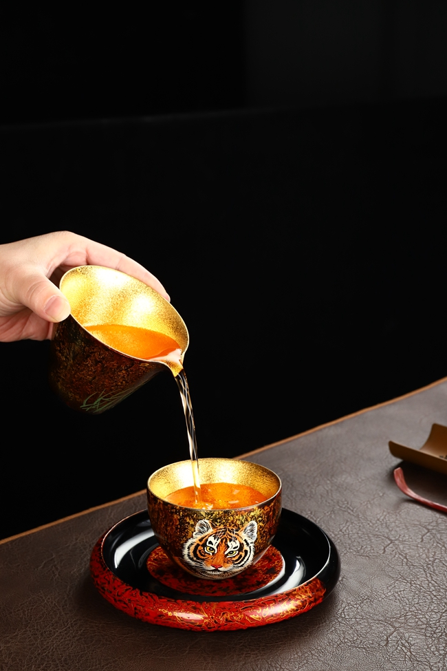 王存旭深愛(ài)當(dāng)?shù)靥厣a(chǎn)業(yè)德化瓷器。積極創(chuàng)新尋找漆畫(huà)技法表現(xiàn)更多的“可能性”致力研究德化白瓷與漆器結(jié)合。創(chuàng)作出漆藝功夫茶具,茶道配件、單杯茶器等一系列產(chǎn)品。漆藝與茶器的碰撞,將現(xiàn)代的時(shí)尚元素、色彩、造型與傳統(tǒng)漆藝技法相“混搭”實(shí)用與審美并重,使漆藝真正走出搏物館,走入大眾生活。體現(xiàn)豐富文化內(nèi)涵和更高藝術(shù)價(jià)值。