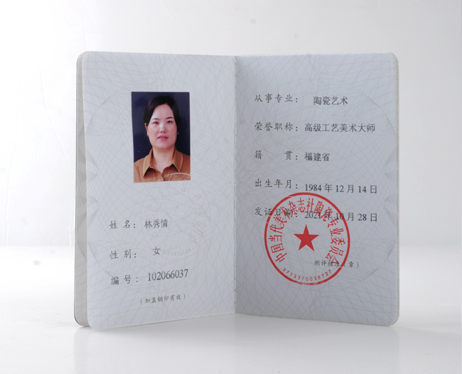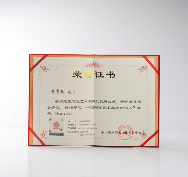 林秀情,1984年出生于世界陶瓷之都德化,中國陶瓷藝術(shù)名家、中國陶瓷藝術(shù)非遺傳承人、高級工藝美術(shù)大師、優(yōu)秀創(chuàng)作坊工作室、中國陶瓷藝術(shù)文化發(fā)展中心會員、“興永達(dá)”藝術(shù)總監(jiān)。