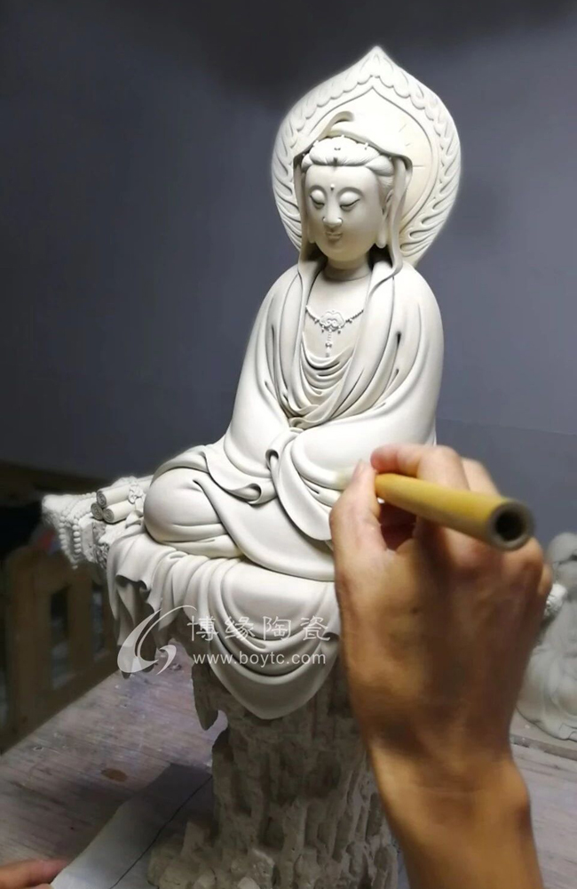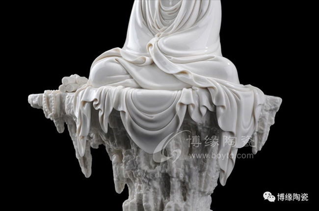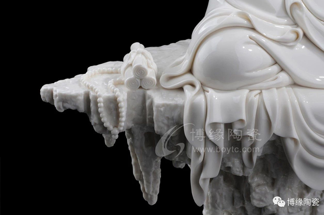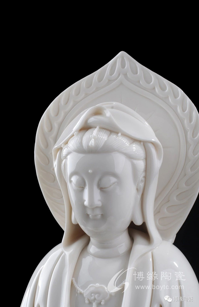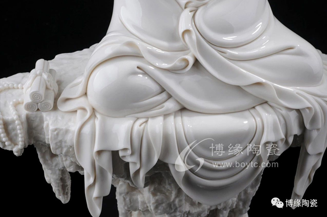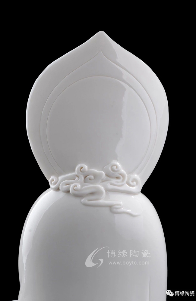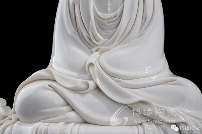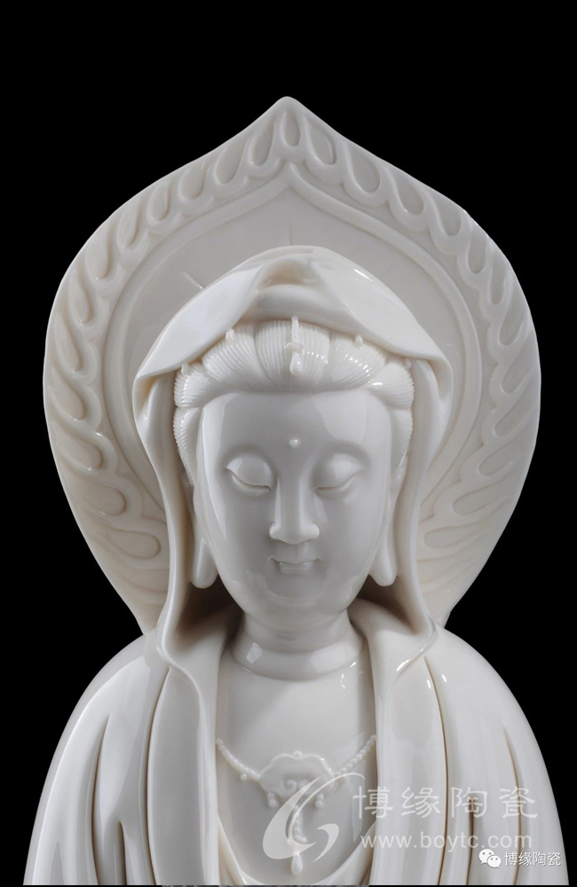 德化瓷器,以白瓷為最;白瓷之中,又以佛像為最。德化白瓷所塑佛像有性格鮮明、造型優(yōu)美、神態(tài)逼真、風(fēng)格洗練的特點(diǎn)。有一種單純的雕塑美和原材料的質(zhì)地美,最能體現(xiàn)佛教樸素、平和的思想。
