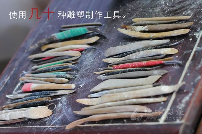 作品純手工制作,經(jīng)堆,捏,雕,塑,刻等,過(guò)程使用幾十種制作工具。