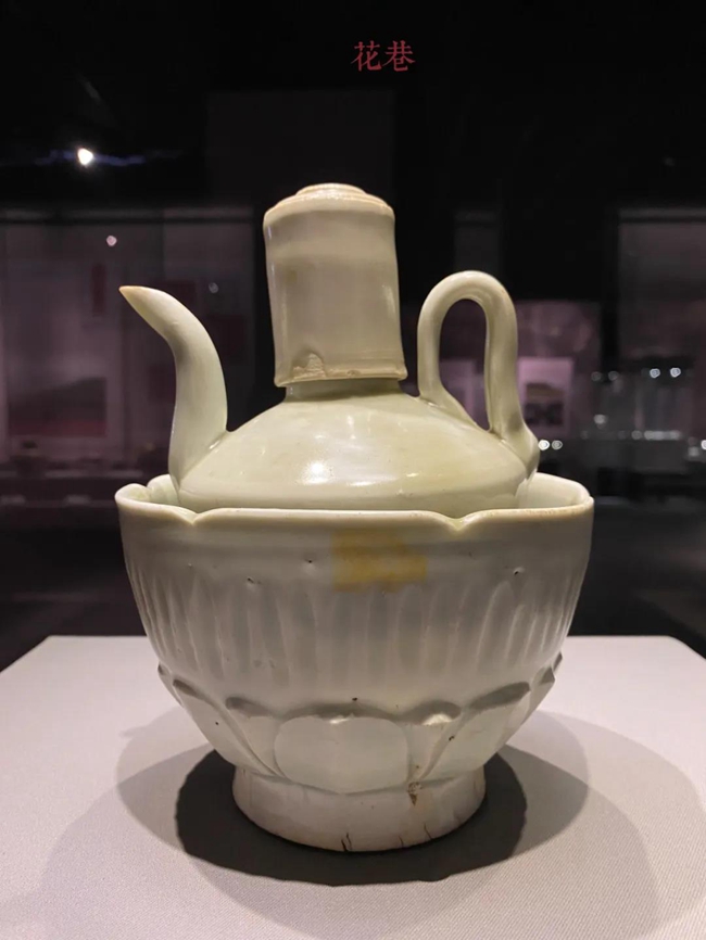 青白釉刻劃蓮紋帶蓋瓷溫壺