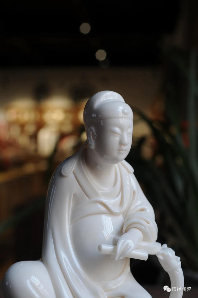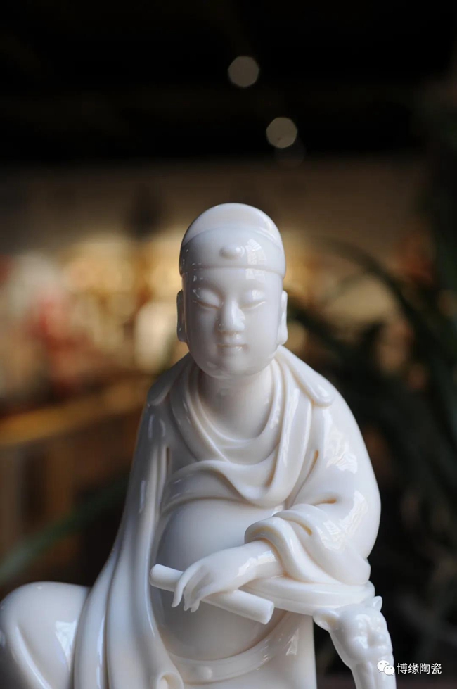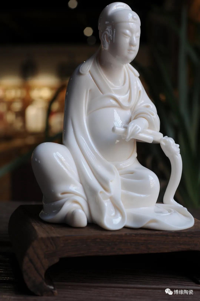 德化瓷器,以白瓷為最;白瓷之中,又以佛像為最。德化白瓷所塑佛像有性格鮮明、造型優(yōu)美、神態(tài)逼真、風格洗練的特點。有一種單純的雕塑美和原材料的質(zhì)地美,最能體現(xiàn)佛教樸素、平和的思想。