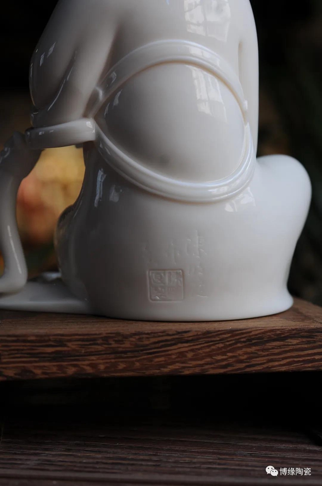 作品采用優(yōu)質(zhì)德化白瓷高嶺土,在自然光下瓷胎通透、溫潤似玉