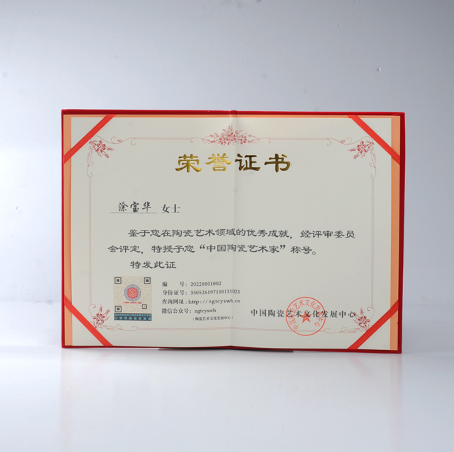 德化上千年的陶瓷文化,給予了德化白瓷以豐厚的滋養(yǎng),涂寶華從小出生于瓷都德化,便耳濡目 染,自小對德化陶瓷產(chǎn)生深厚興趣,1992年-2002年開始師從福建省工藝美術(shù)大師鄭燕婷, 2003- 2008年在飛天陶瓷廠從事陶瓷雕塑工作,2008年至今在德化御芳閣陶瓷研究所從事雕塑工作并任藝術(shù) 總監(jiān),經(jīng)過近30年創(chuàng)作與積累,其熟練掌握陶瓷雕塑設(shè)計(jì)、上釉、手拉胚、燒制、捏花等技藝,2012 年成立御芳閣陶瓷研究所,專業(yè)從事傳統(tǒng)雕塑、捏花、茶具等生產(chǎn)制作,創(chuàng)作出一系列優(yōu)秀作品,其 作品深受廣大收藏愛好者喜愛,多件作品榮獲各評(píng)比金獎(jiǎng)等。
