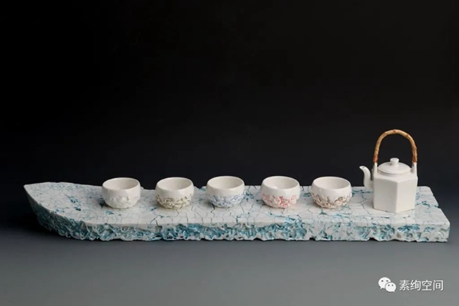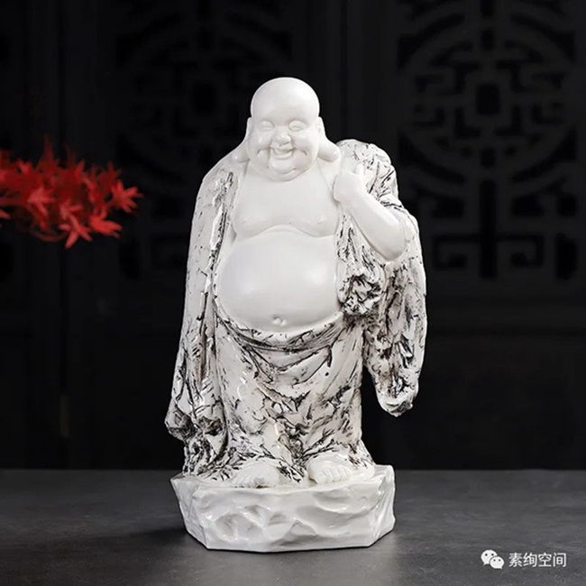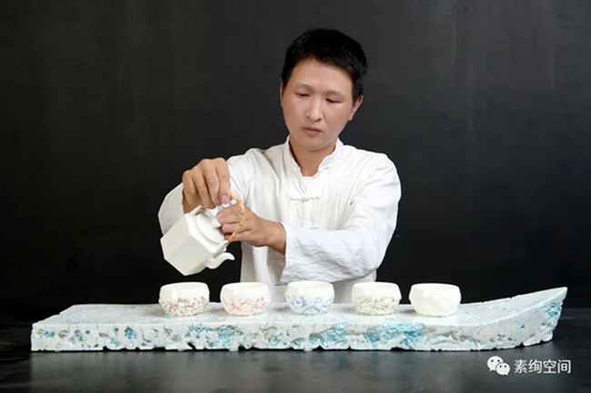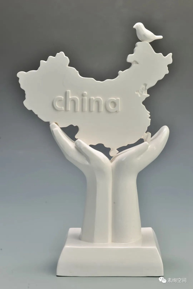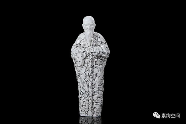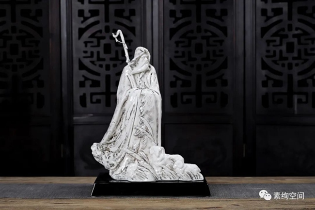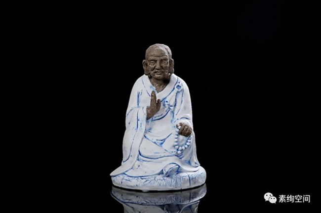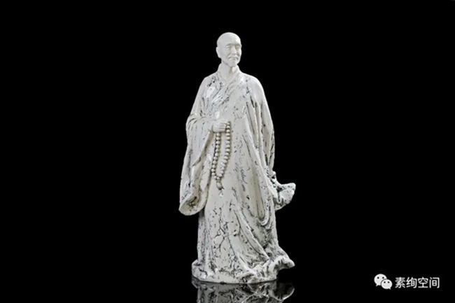 但德化畢竟是“中國(guó)白的故鄉(xiāng)”,白瓷是德化陶瓷的特色。章再守2017年開始逐漸轉(zhuǎn)向白瓷創(chuàng)作。但出于思變的追求,他依然不走尋常路,并不只是單一色的純白,而是獨(dú)辟蹊徑,相繼推出的《弘一大師》等作品在業(yè)界引起一定的反響。