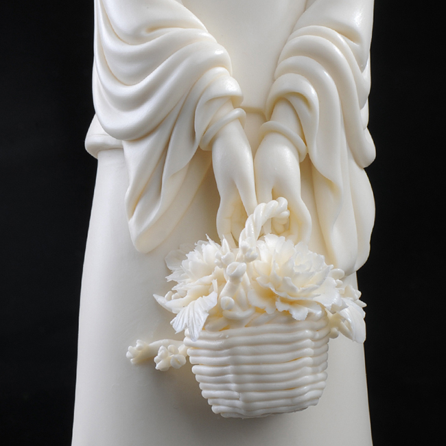 《悠然》由福建省陶瓷技術能手王桂蘭設計創(chuàng)作。作品以德化溫潤如玉的 “中國白”為胎質(zhì),作品塑造知性唯美,溫柔優(yōu)雅,盡顯古典美。匠心打造,神情刻畫,逼真自然,姿態(tài)溫婉,手持花籃,片片花瓣均為手工捏制,技藝精湛,衣紋線條柔美自然,翻轉(zhuǎn)自然,細致雕琢。