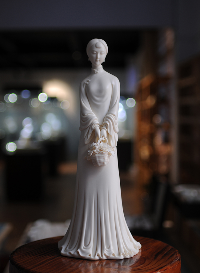 在德化,明中期以后的仕女瓷塑對后來的發(fā)展起到了積極的作用。晚清時期陶瓷仕女大量出現(xiàn),在一定程度上反映了當時社會生活的現(xiàn)狀。及至民國時期乃至現(xiàn)當代,仕女題材的陶瓷作品更是層出不窮,舉目皆是。