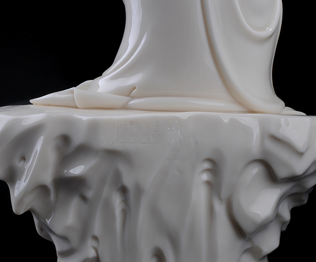 《持經(jīng)觀音》由福建省陶瓷藝術(shù)大師鄭建冰設(shè)計(jì)創(chuàng)作。作品以德化溫潤如玉的 “中國白”為胎質(zhì),經(jīng)1300多度高溫?zé)疲ンw溫潤如玉。作品觀音面容飽滿,神情刻畫,逼真自然,匠心造像,手持經(jīng)書,衣紋線條柔美,流暢自然,形象塑造,生動(dòng)自然,精雕細(xì)刻,栩栩如生。觀音慈悲之相,宛然可見。作品落有大師個(gè)人簽名及印章落款,兼具審美價(jià)值和收藏價(jià)值,是不可多得的雅作。是辦公、家居、書房裝飾擺設(shè)、禮贈(zèng)、收藏的好選擇。