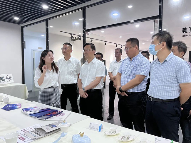 林向東主任一行參觀了研究院展廳,認真聽取了關(guān)于研究院發(fā)展歷程、產(chǎn)業(yè)服務(wù)模式、設(shè)計賦能陶瓷產(chǎn)業(yè)創(chuàng)新發(fā)展等方面的介紹;重點考察了研究院生態(tài)系統(tǒng),詳細了解了日用陶瓷智慧工廠,全球陶瓷設(shè)計交易與孵化平臺瓷匠集等重點項目運營機制,體驗了研究院的原創(chuàng)設(shè)計及爆款產(chǎn)品。