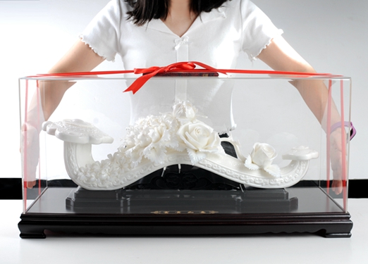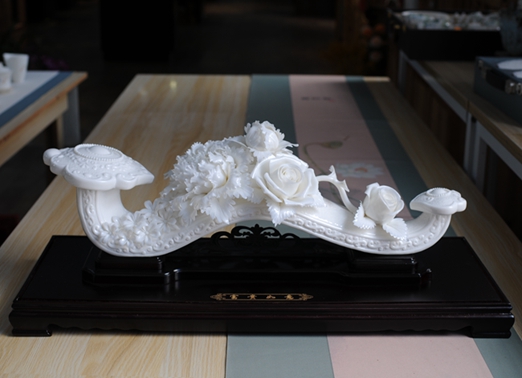 瓷藝品手工制作,捏花一絲不茍或薄如蟬翼,或嬌艷欲滴,如意上紋飾鑲嵌,賞心悅目,溫婉細(xì)膩的述說著千年不息的瓷文化,最終形成一件美輪美奐的瓷藝術(shù)作品。