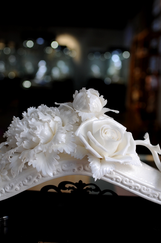 瓷花純手工捏制,細(xì)膩精致、薄如蟬翼、以假亂真,每片花瓣層層疊疊,繁復(fù)但線條流暢。手工精雕細(xì)琢,刀工精湛,線條清晰、簡潔、瀟酒、多變化,柔媚流暢,翻轉(zhuǎn)自然,展現(xiàn)瓷雕藝術(shù)的魅力。
