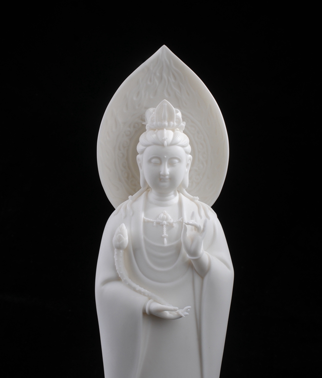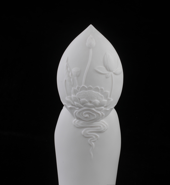 作品采用德化上等中國(guó)白瓷泥,千年傳承,國(guó)家非遺保護(hù)項(xiàng)目(德化陶瓷燒制技藝),胎體溫潤(rùn)如玉,通體潤(rùn)白潔凈,胎密質(zhì)堅(jiān)。
