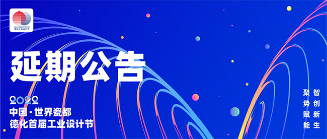 原定于2022年9月23日在中國(guó)德化啟動(dòng)的“德化首屆工業(yè)設(shè)計(jì)節(jié)”將延期舉辦,具體時(shí)間另行通知。衷心感謝各級(jí)領(lǐng)導(dǎo)、部門、企業(yè)、專家、年輕設(shè)計(jì)師及廣大業(yè)界同仁對(duì)“德化首屆工業(yè)設(shè)計(jì)節(jié)”的關(guān)心和支持,對(duì)活動(dòng)延期給您造成的諸多不便,我們深表歉意。