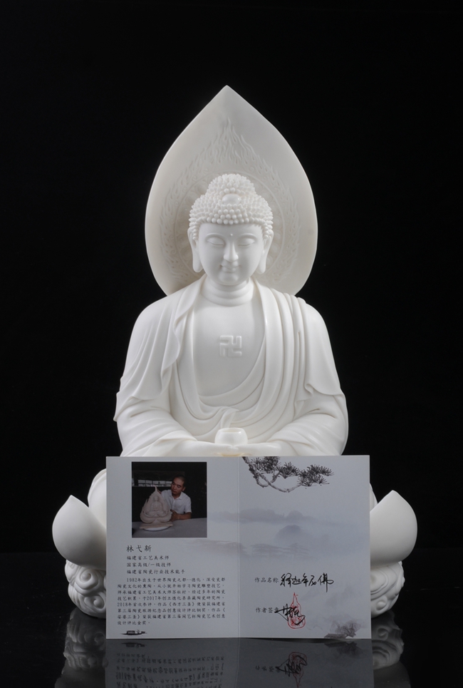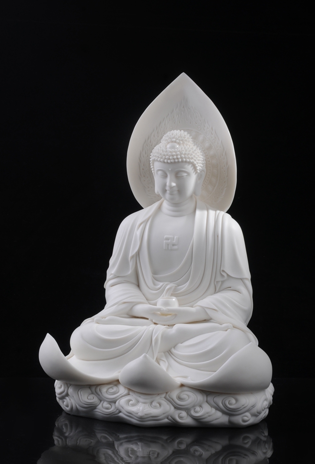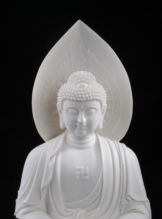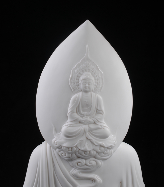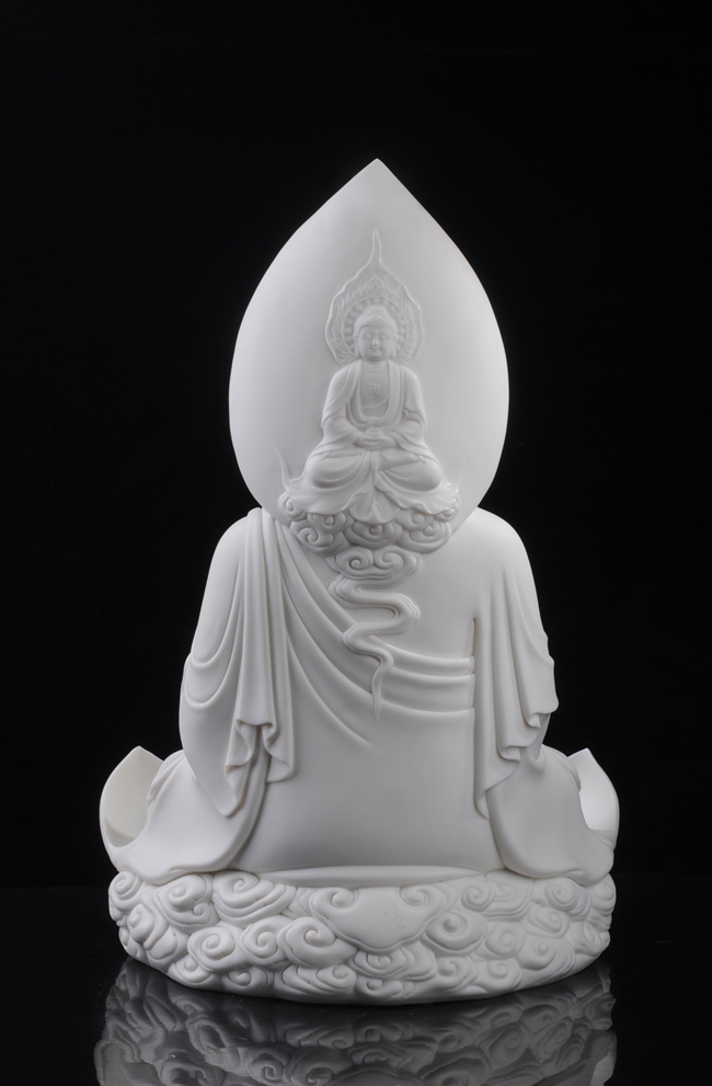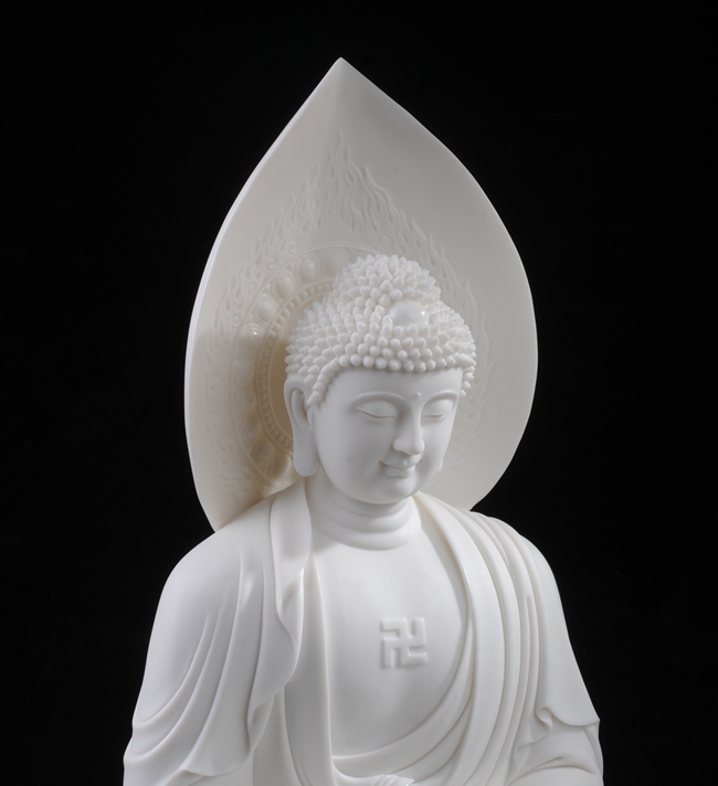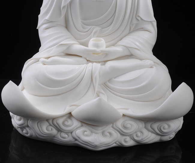 德化瓷器,以白瓷為最;白瓷之中,又以佛像為最。德化白瓷所塑佛像有性格鮮明、造型優(yōu)美、神態(tài)逼真、風(fēng)格洗練的特點(diǎn)。有一種單純的雕塑美和原材料的質(zhì)地美,最能體現(xiàn)佛教樸素、平和的思想。