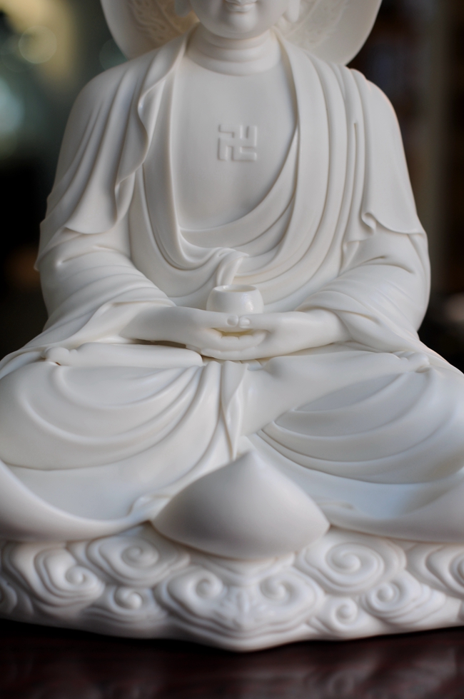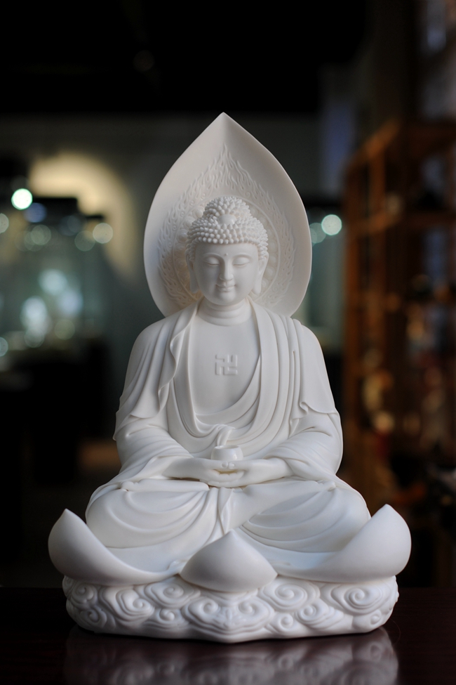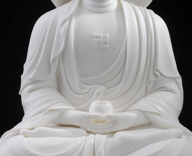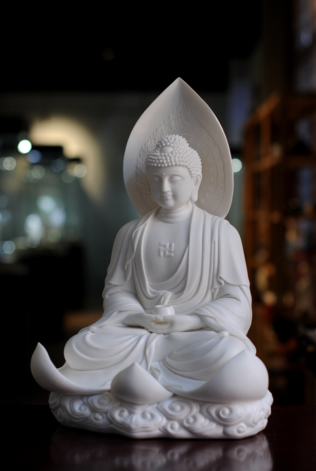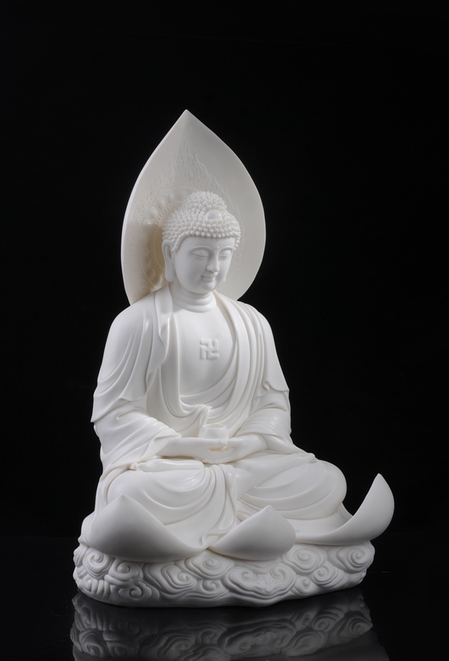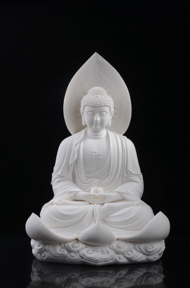 德化瓷器,以白瓷為最;白瓷之中,又以佛像為最。德化白瓷所塑佛像有性格鮮明、造型優(yōu)美、神態(tài)逼真、風(fēng)格洗練的特點(diǎn)。有一種單純的雕塑美和原材料的質(zhì)地美,最能體現(xiàn)佛教樸素、平和的思想。