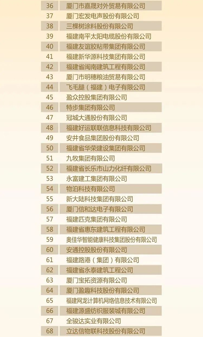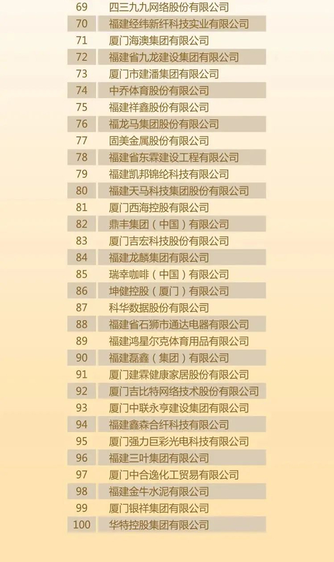 這是福建省工商聯連續(xù)第5年發(fā)布福建省民營企業(yè)100強榜單。