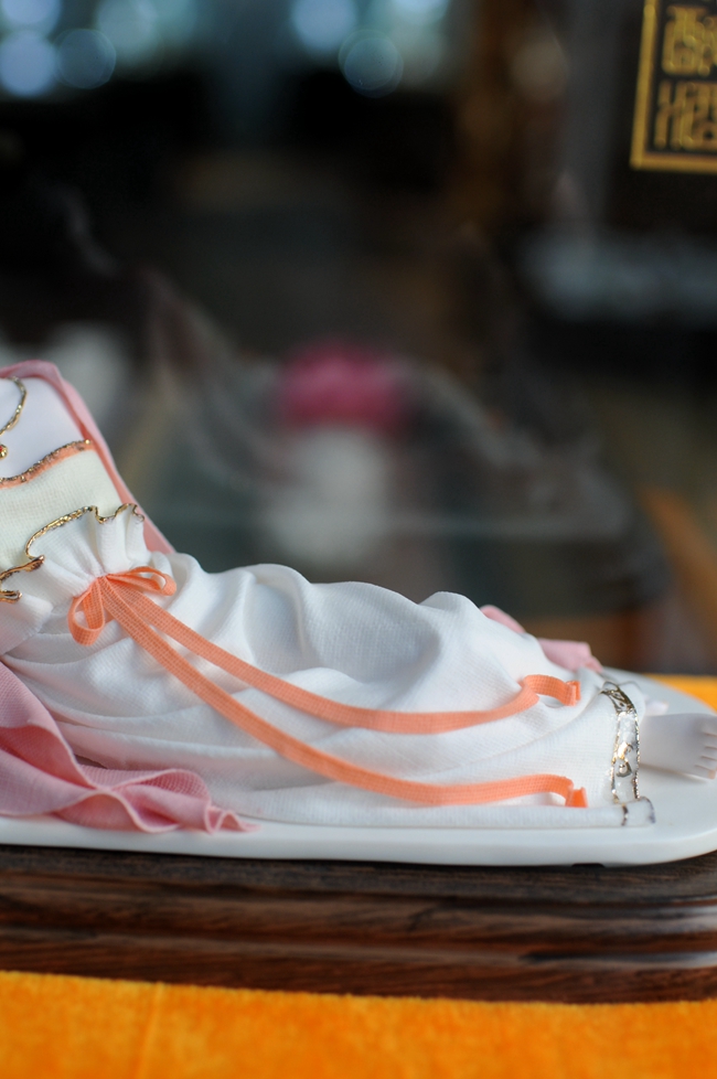 薄如紙的瓷質(zhì)衣著,細(xì)如絲的瓷質(zhì)裙帶,精致的雕塑技法