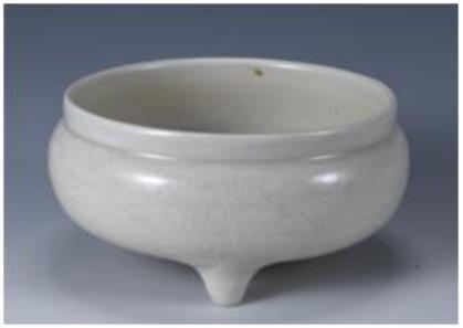 明 白釉刻花三足爐
