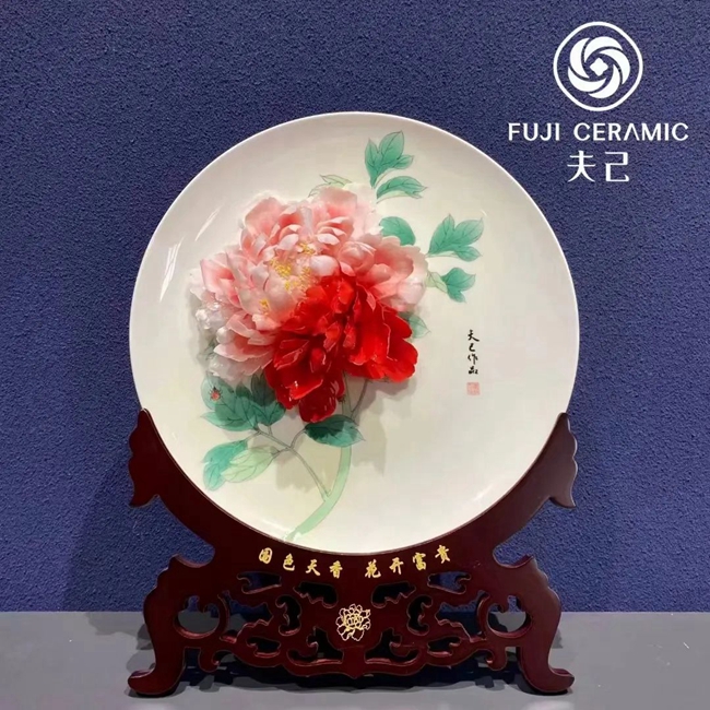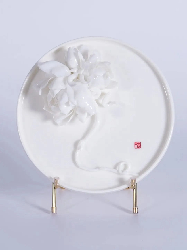 一朵朵嬌嫩欲滴的牡丹花,綻放在陶瓷圓盤上,花瓣薄如蟬翼,花心似有芳香撲面而來——這些2019年4月亮相至今依然芬芳的花兒,曾經(jīng)以“國色天香——紫禁城里賞牡丹”在北京故宮博物院慈寧宮享有專門展區(qū),回歸德化后成為“鎮(zhèn)廳之寶”。