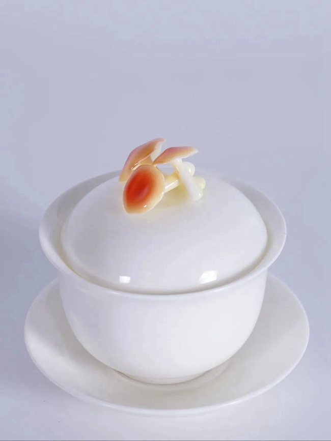 瓜果蔬菜遇見陶瓷器皿,是一種什么樣的新鮮體驗?《人間煙火》系列茶具給出了答案:白瓷茶蓋上,一條油綠豌豆莢敞開小口,圓潤的弧形線條便于抓握;三兩朵蘑菇互相交疊,仿佛雨后剛從土地冒出頭;兩粒殷紅櫻桃立于同色茶蓋上,小巧的造型讓人愛不釋手。